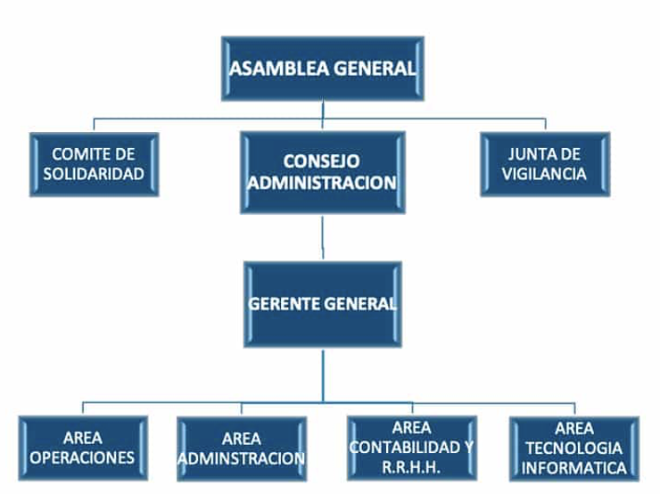 Dicha estructura está presidida por la Junta de Asamblea General de Socios, el cual es la autoridad suprema de la Cooperativa. Esta se constituye por la reunión de los socios debidamente inscritos en el registro social y los acuerdos que se adopten, con sujeción a las disposiciones legales, reglamentarias y estatutarias, serán obligatorio para todos los miembros de la cooperativa.